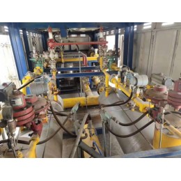用高压胶管和快装接头与CNG运输车连接,压缩天然气(22MPa以下)通过过滤器、球阀和紧急切断阀进入 换热器加热,经过 调压至2.0~4.0MPa,进入二 换热器加热,通过二 调压器减至0.1~0.4MPa,(如需三 减压则通过二 调压器减至1.0~1.4Mpa, 后进入三 减压至0.1~0.4MPa),进入流量计进行流量计算,天然气出站前进行加臭处理。减压站内的各 压力、温度及紧急切断阀均与中控系统联锁。该系统两 换热须配热水锅炉管网系统,适用于大型减压站。