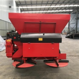 该机结构紧凑,保养简单,维护成本低;撒布均匀,作业效率高,适用环境广泛。通过三角带驱动的两个旋转盘实现撒布作业,在每个圆盘上有四个固定可调节的播齿,此结构除了可以提高撒布的均匀性外,简单地改变播齿的角度,还可以改变撒布范围,由拖拉机变速箱后输出提供动力。