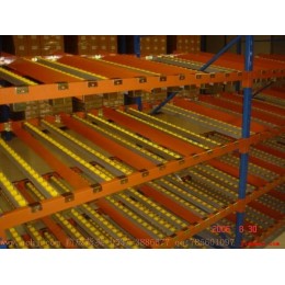 滑移式货架上面装有流利条,也就是滑轨,货物借助滑轨的滑动性和倾斜度以及自身的重力,可以实现物料自动滑动,从有坡度的滑道上端将货物置于滚轮上,货物借助重力作用自动下滑,利用 边通道存货,另 边通道取货,实现货物的 进 出, 次补货多次拣货。