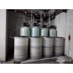 水的硬度主要由其中的阳离子:钙(Ca2+)、镁(Mg2+)离子构成。 当含有硬度的原水通过交换器的树脂层时,水中的钙、镁离子被树脂吸附,同时释放出钠离子,这样交换器内流出的水就是去掉了硬度离子的软化水,当树脂吸附钙、镁离子达到 定的饱和度后,出水的硬度增大,此时软水器会按照预定的程序自动进行失效树脂的再生工作,利用较高浓度的溶液(盐水)通过树脂,使失效的树脂重新恢复至钠型树脂。
