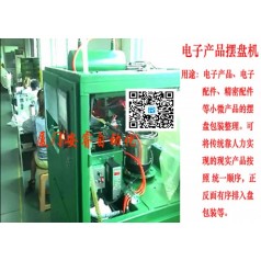 全自动摆盘机/电子类等微小产品等系列设备、我公司是专业研发设计生产、电子类产品自动摆盘机系列设备、该机主要针对电子类等微小产品需要自动摆盘/:排列: 整理等,而专业设计,为了进 步降低人工成本的提高。生产效率和产品品质的要求而设计的自动化和智能化系列设备,解决了微小产品人工操作不便,根据客户的要求来设计生产:设备原理说明、把产品的方向位置,整齐有序的排列在规定的托盘里。 个人同时可以管理3-5台机械。大大减省了人力资源,提高了工作效率,解决了效率及品质无法保证的问题。我们采用进口工控系统,性能稳定。操作简单方便, 我们可根据贵工司的特殊产品、工艺要求可开发设计生产、无限制行业,您的需求我们来实