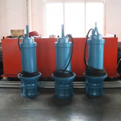 潜水轴流泵的泵段由进水喇叭口,叶轮部件,叶轮外壳和导叶体四大零件组成。潜水电机是全密封干式异步电动机,机壳将电机封闭,电机上端电缆出线处有静密封装置,电机下端盖出轴处有转动密封装置,潜水电机具备 切潜水运行的安全可靠性能。对密封渗漏,线圈和轴承温度均有检测,报警和保护装置,不影响电机正常运转的早期渗漏(只报警)。当线圈温度超过135度,轴承温度超过90度时,采用断电保护,所有保护器由 个潜水泵专用保护器进行监控,以保证水泵安全使用。