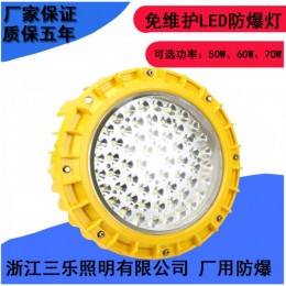 防爆灯外壳采用铝合金高压铸造成型,表面经抛丸后高压静电喷塑,有效提供了壳体的散热性能;铝基板紧贴铝合金壳体,可将点热源瞬间转换为面热源,散热面积成倍增加,利于热量迅速分散,提高散热效率;壳体分流分散沟槽,借助空气流动带走热量;散热片密度高,大大提供散热面积,充分保证LED的散热要求,使用寿命更长。