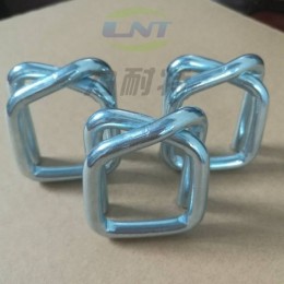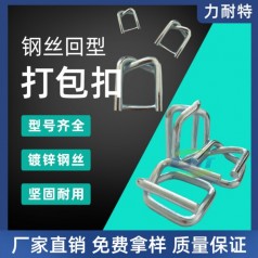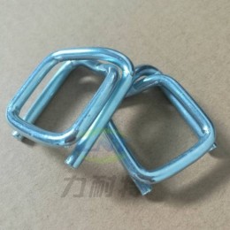 钢丝打包扣又称回型扣、M扣、它由大型机械冲压回形而成,经过镀锌或磷化等不同表层处理具有 强抗拉能力,是配合聚酯纤维柔性打包带、PP带、PET带、编织带等 理想的金属打包扣。