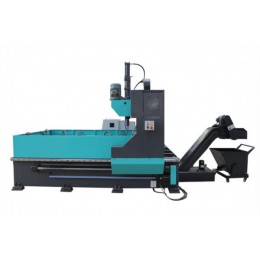 优势:它是传统摇臂钻效率的三倍,可以通过PLC直接导入图纸不需要人工进行划线定位。因为它分为A B C D四个区域,当AB区域进行做工时,CD区域可以进行上下料,动力头 直处于工作状态,而传统的摇臂钻需要人工进行划线定位,进行上下料时,钻头属于停止状态。我们的平面钻配备快换夹头,可以快速更换钻头,而传统的需要人工用锤子敲打替换钻头,导致主轴变形,精度下降。平面钻是液压进给方式,可以快速进给,自动转攻进,快速退回,因为链式排屑可以将废屑自动回收到排屑箱内,水循环冷却方式冷却水可以循环使用,更加环保。