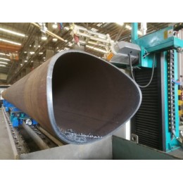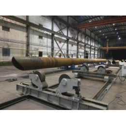 滚轮式相贯线切割机可以切割管径219-1210,325-1620,630-2000 , 可承重10吨,采用V型轮上下料,切割的时候V型轮不参与联动。通过主卡盘提供动力,摩擦盘起承重和从动的作用。可以电动锁紧也可以手动锁紧。割腔采用扇形头偏摆,偏摆角度是55°[(管径-zui小管径)÷2]+10=割腔升降行程。适用于厚管和大管径的切割,可以自动上下料。滚轮式由可升降式主轴箱,滚轮托架和切割小车等组成。滚轮托架采用固定滚轮间距的方式,用于用于承接支撑管材,上料方便,不需要人工调整滚轮的距离,人工将管材吊放在滚轮托架上即可自动定心,然后升降式主轴箱升降完成管材中心的调整,夹紧后配合切割小车进行相贯线切割。