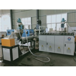 采用PE\PP高效单螺杆挤出机,挤出部分采用强制水冷加料段,机筒开槽,主驱动电机的功率消耗大幅度的降低;大长径比螺杆,适应物料能力强,塑化效果优。