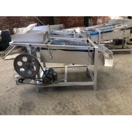 该精选筛为二层筛网, 经过进料口处风机抽风,直接抽走重量轻的杂叶或麦秸秆,上层筛的初次筛分再把大杂清理过,好的粮食(种子)直接落到下层筛网上,下层筛网会把粮食(种子)中的小杂.小石子.有缺陷的粮食(种子)直接漏掉,完好的粮食(种子)会从出料口筛分出来。该小型清粮机解决了扬场机的功能单 ,不能有效去除石子.土块的缺陷,更能为清理、净选粮食(种子)带来满意的效果。该机有占地小,移动方便,便以维修,除尘除杂效率明显,能耗低,使用简便等优点。真可谓是中小型粮食清理净选筛中的战斗机!