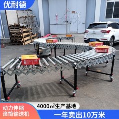 动力滚筒伸缩线是由滚筒作为输送介质,利用可伸缩的组件做机架的输送机。动力滚筒伸缩线的机体可以根据输送货物的需要自由变向,灵活改变输送方向,输送角度也可以改变。动力滚筒伸缩线的支腿高度可以调节,底部配有带刹车的脚轮可以方便移动,可按需要形成直段、S段和圆弧段等。