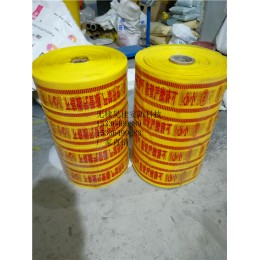 公司十分注重产品质量与新产品的开发,光缆管道地埋式警示带采用优质基材, 进的生产工艺生产而成,该产品采用高强度、耐老化的高分子材料,色泽鲜艳、醒目,长期铺设在地下不褪色,耐腐蚀性能好,符合长期地下不变要求。