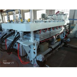 挤出机:根据使用物料的不同,选用(排气、不排气)单螺杆挤出机,螺杆的特殊设计和精准的温控系统,pp中空板生产设备,确保塑化良好及高产量的稳定挤出。使用硬齿面减速箱,其优点使用寿命长、稳定性高、噪音低等。