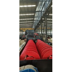 双螺旋洗砂机是洗砂机的 种,主要通过设备内的螺旋装置对砂石料进行搅拌,从而使砂石料中的泥土与水进行混合,从设备上的流口排出,而砂石料则在螺旋装置的作用下被逐步筛选,从顶部的出料口排出,从而实现了砂石料的清洗筛选效果。适用于冶金、建材、水电等行业的洗选、分 、除杂等作业,用于细粒度和粗粒度物料的洗选作业。对建筑用砂、筑路用砂石犹为适宜。螺旋洗砂机功率消耗小、洗净度高。密封结构好、全封闭传动装置、可调式堰板,确保了产品耐用、清洗、脱水效果好、细粒产品保持稳定等特点。