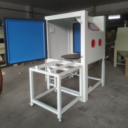 3、可依客户提供工件尺寸、重量、型状订做转盘转动360度,可加装电动调速转盘,加快加工速 度,较易控制喷砂速度。可用气缸开门,方便工件进出。