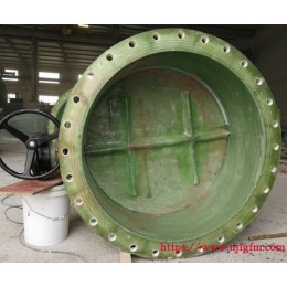 玻璃钢蝶阀把主要易腐蚀部件如阀体、阀板等设计为玻璃钢材料,玻璃钢部件所使用的纤维、纤维织物与树脂类型由蝶阀的工作条件确定。玻璃钢阀体的主体形状为直管状,它的结构特点是以 段玻璃钢直管为基础,然后再增加法兰、密封环制造而成。该种蝶阀具有耐腐蚀能力强、成本低廉、制造工艺简单灵活等特点。
