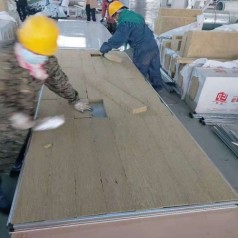 3.玻镁板:采用5mm后玻镁板平铺在岩棉上,增强岩棉夹芯板的抗弯曲强度和平整度。