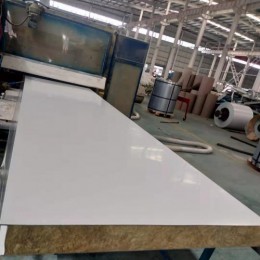 1.上下表面:采用镀锌彩色钢板,厚度为0.3-1.2mm。根据客户的具体要求,也可采用镀铝锌彩色钢板或镀锌钢板。钢板 经成型机轧制成型后在与岩棉工厂复合。