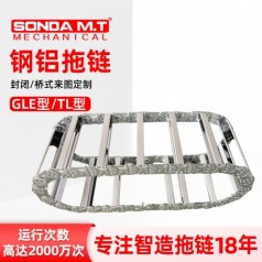 海兴盛达全封闭拖链金属拖链钢铝拖链电缆拖链穿线拖链工程拖链有三种支撑板的形式。(1)当拖链需承载较大管、线缆负荷时、应选用高强度支撑板——整块式(2)当管缆的管接头尺寸大于支撑板内腔孔径或须经常拆装、维修等时。可选用支撑板——分开式(3)安装管缆的规格品种较多时,可选用支撑板——框架式。