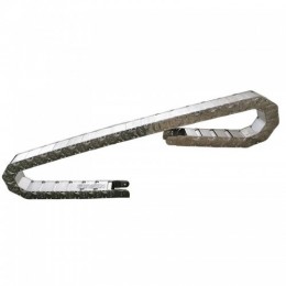 钢制拖链的主体是由链扳(钢板镀铬)支撑扳(挤拉铝合金)轴销(合金钢)等部件组成,使电缆或橡胶管与拖链之间不产生相对运动,不产生扭曲变形,链扳经镀铬处理外形效果新颖结构合理,灵巧强度高,钢性好不变形,安装方便,使用可靠,易拆装,尤其是采用高强度耐磨材料,合金铜为轴销,提高了产品的耐磨强度,弯曲更灵活,阻力更小,降低了噪音,从而可保证长时间使用不变形,不下垂。