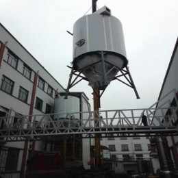3、按照安装图将蒸汽加热器(或热风炉)、电加热、进风道进至塔顶,将进风道与楼面承座法兰焊牢。