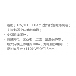 适用于12V/100-300A 铅酸替代锂电池模组;