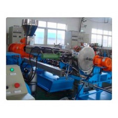 三,PVC电缆料造粒机,PVC电缆料生产线(品牌)新型;高混机----螺旋自动上料机----双螺杆造粒机-----单螺杆造粒机-----对吹热切机头----- 旋风分离器-----二 旋风分离器-----加长风冷振动筛----成品料仓;耗较大。(. . .)因此, 般主要用作低压(≤1KV)和中高压(6~10KV)电缆的 缘层。PVC塑料由于具有难燃、耐油、耐电晕、耐e腐蚀和良好的耐水性能,因此还广泛用作电线电缆的护层材料。利用添加特种性能助剂或改性剂,可以分别制造出耐热型(105℃)、耐寒型、耐油型、难燃型、特软型和PVC电缆料,以满足特殊电线电缆产品的需要。电缆料在PVC配方中属于性能要求较高的品种,特别是电 缘性、耐低温性和耐老化性等都有 定要求。配方设计时必须考虑这些特殊的要求。 PVC电缆料可分为护层 和 缘 两种。护层 要求耐热性好,而 缘 则要求 缘性好。