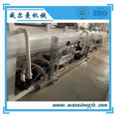 *、概述①此生产线选用本公司 挤出机:2台共挤。它的螺杆带有混炼头和屏障,并且机筒做成带有新型沟槽的结构。这些全新设计可以增加挤出管材的塑化和混练效果。再加上特殊设计的HDPE(PP,ABS)模具,就可使熔点更低,拥有更好的混合效果,低的机头压力,保证的稳定的高产量,延长主机使用寿命。②采用本公司独立开发的冷却和定径系统,使用水循环冷却HDPE(PP,ABS) 原料。这样的特殊设计可以使挤出管材拥有稳定的直径尺寸和圆整度,可适合生产厚壁管。③特殊设计的全不锈钢加长型真空定径箱,可以确保稳定的直径尺寸和圆整度,使用速度控制系统,使牵引速度稳定。二、特点和型号:①配合单螺杆挤出机,适合PE颗粒料的挤出,产量高, 高产量可达到1吨每小时。②PE管材直径范围500mm-1200mm。③本生产线采用合理的设计,实惠,耐用。