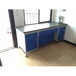 2)理化贴面板采用25mm厚的国产优质环保型中纤板为基材,表面粘压耐酸碱的进口0.9mm厚Chemsurf理化板,台面四周断面经国产优质2.0mm厚PVC封水处理,外表美观、光滑。