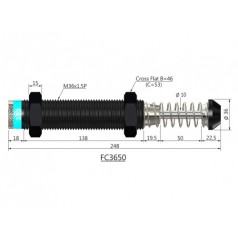 M 36 * PITCH 1.5 缓冲行程 50 mm。产品以PE袋封口包装,再装入内盒,附两个螺帽;定位螺帽为选购配件。表面处理为染黑。