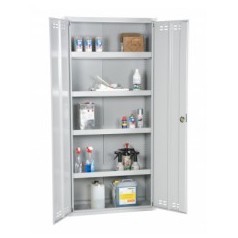 稳定的钢柜,带有边缘和密封的搁板,以防化学品可能泄漏。