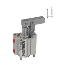此型式空压缸,采用标准规格化治具缸,加装杠杆式夹持机构,活塞推出为夹紧状态,主要机构零件安装于缸体外部,易于维护。