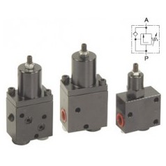 此型式油压顺序阀,特别适用于夹具回路,由压力决定油压缸之顺序动作,体积小,耐高压,安装于回路中,不需其他控制,即可得到顺序动作确实之效果。