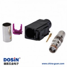 - RF连接器,Fakra连接器,母,弯式,50欧姆,焊接,压接,接线,RG174,RG316,黄铜,镀镍;