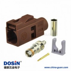 - RF连接器,Fakra连接器,母,直式,50欧姆,焊接,压接,接线,RG174,RG316,黄铜,镀镍;