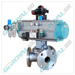 采用新型气动执行器,有双作用式和单作用式(弹簧复位),齿轮齿条传动,安全可靠;大口径阀门采用系列AW型气动执行器拔叉式传动,结构合理,输出力大,有双作用式和单作用式。