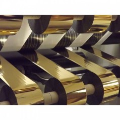 热烫印膜又称为烫印铝箔,厚度在10μm到20μm不等,*般包括基膜,隔离层,保护层,金属层以及胶粘层五种材料。