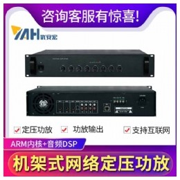 网络定压功放是*台采用了*进**功率放大电路设计,具有强劲功率输出、超强负载能力的网络音频广播设备。支持2路本地音频输入、2路MIC输入;还配置了2路本地音频、1路网络音频、2路MIC音频和高低音可调旋钮;音频输出方式:电压输出为70V/100V,定阻输出为4-16Ω;输出功率120W,输出频响范围为60~18KHz。设备设有异常工作保护警告功能,当输入信号过大、负载过重、温度过高或线路短路时,指示灯提示,有*高的可靠性。 其外壳采用2U标准机箱设计,铝合金面板,美观实用。