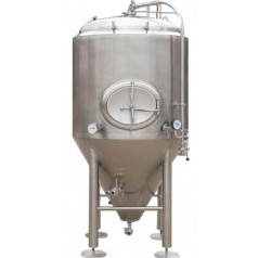 啤酒发酵罐罐体为圆柱形,顶盖为碟形,底盖为采用60°~90°倾斜度的锥形有利于罐中酒液对流强烈,发酵速度快,而且利于排放酵母和发酵罐中杂质;在酒精发酵过程中,为了回收CO2气体及其所带出的部分酒精,发酵罐宜采用密闭式。罐底部有手孔、与罐顶连接的CO2、空气、CIP等的进出管、内容物容积测量装置、空罐探头及保压装置等。