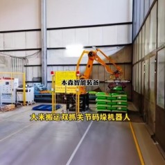 大米码垛生产线中的关节码垛机械臂是*种重要的自动化设备,它在大米加工和仓储行业中发挥着关键作用。以下是对大米码垛生产线关节码垛机械臂的详细介绍: