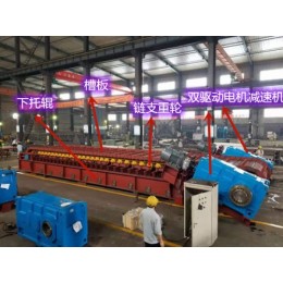 总结:这种双驱动装置结构通过两台电机协同工作,提高了板式给料机的驱动能力和运行稳定性,适用于大载荷、长距离输送的工况。